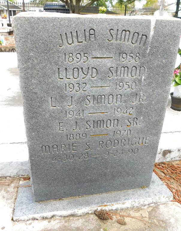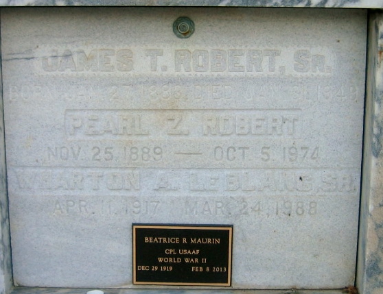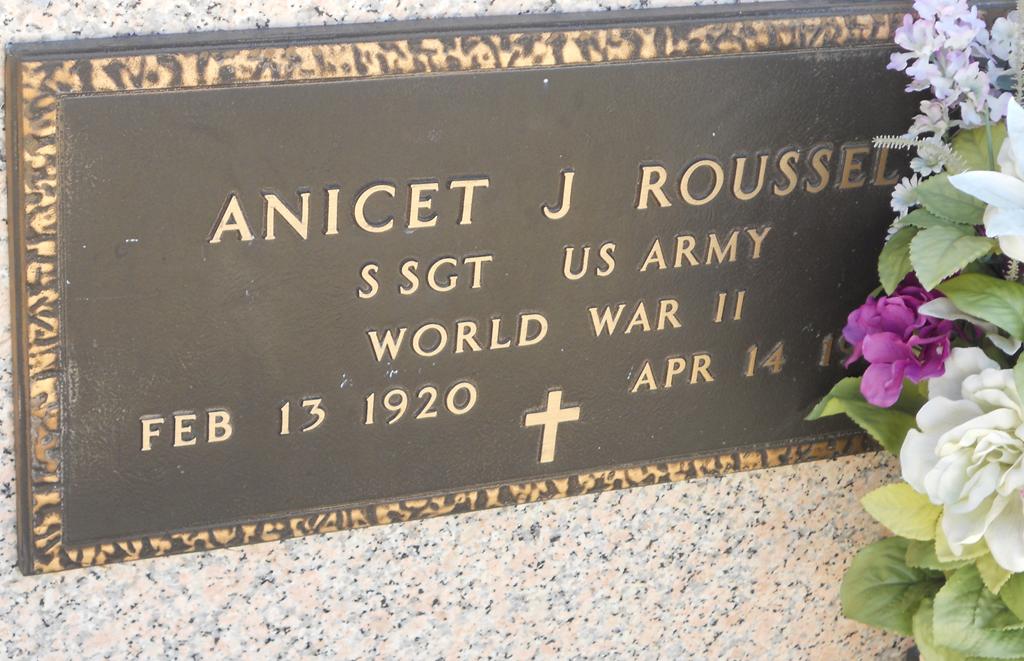 | Roussel | Anicet J | 2/13/1920 | 4/14/1977 | Mae Vicknair | Elie & Justine Poche Roussel | WW II S/Sgt US Army | Tm T-Lo | |