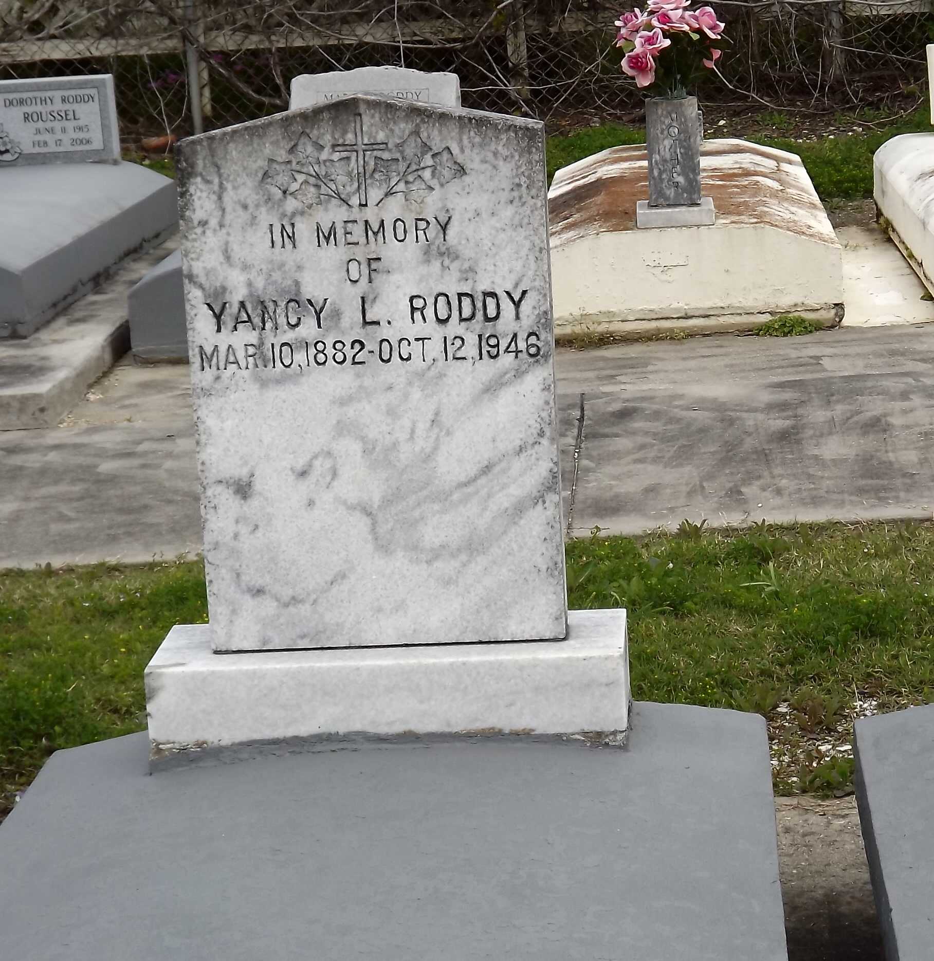| Roussel | Dorothy Ann (Roddy) | 6/11/1915 | 2/17/2006 | Ecton J - 1941 | Yancy L & Mary C Bergeron Roddy | obit + | ||