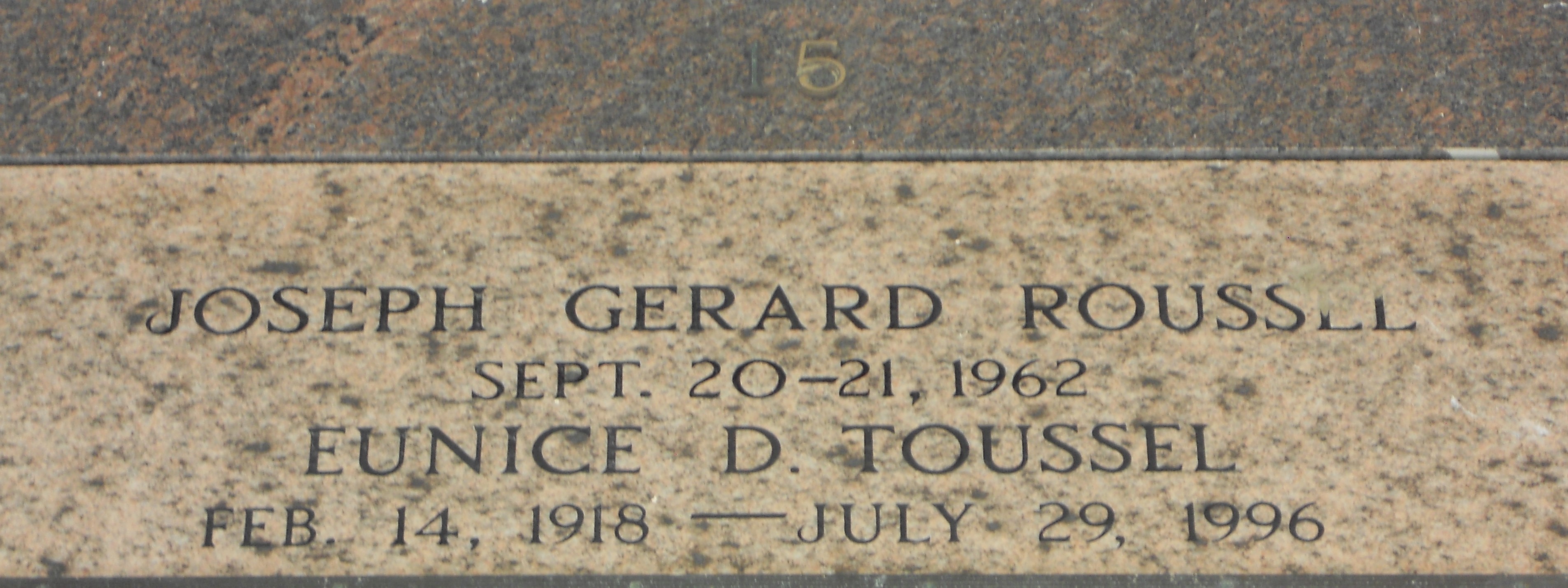 | Roussel | Joseph Gerard | 9/20/1962 | 9/21/1962 | Brent P & Charlene Remondet Roussel | Tm T-Lo | |||