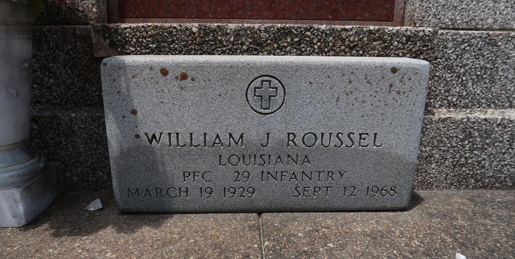 | Roussel | William J | 3/19/1929 | 9/12/1968 | Robert T & Myrza Brignac Roussel | LA PFC 29 Inf US Army | photo | ||