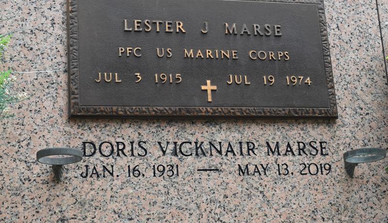 | Marse | Lester Joseph | 7/3/1915 | 7/191974 | Doris M Vicknair | Joseph A & M Agnes Brack Marse | PFC US Marine Corps | Tm T-Lo |