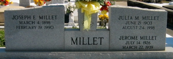 | Martin | Jeffery Louis Sr | 7/13/1910 | 3/8/1946 | Regina M Millet | Emile & Adida Bourg Martin | ||