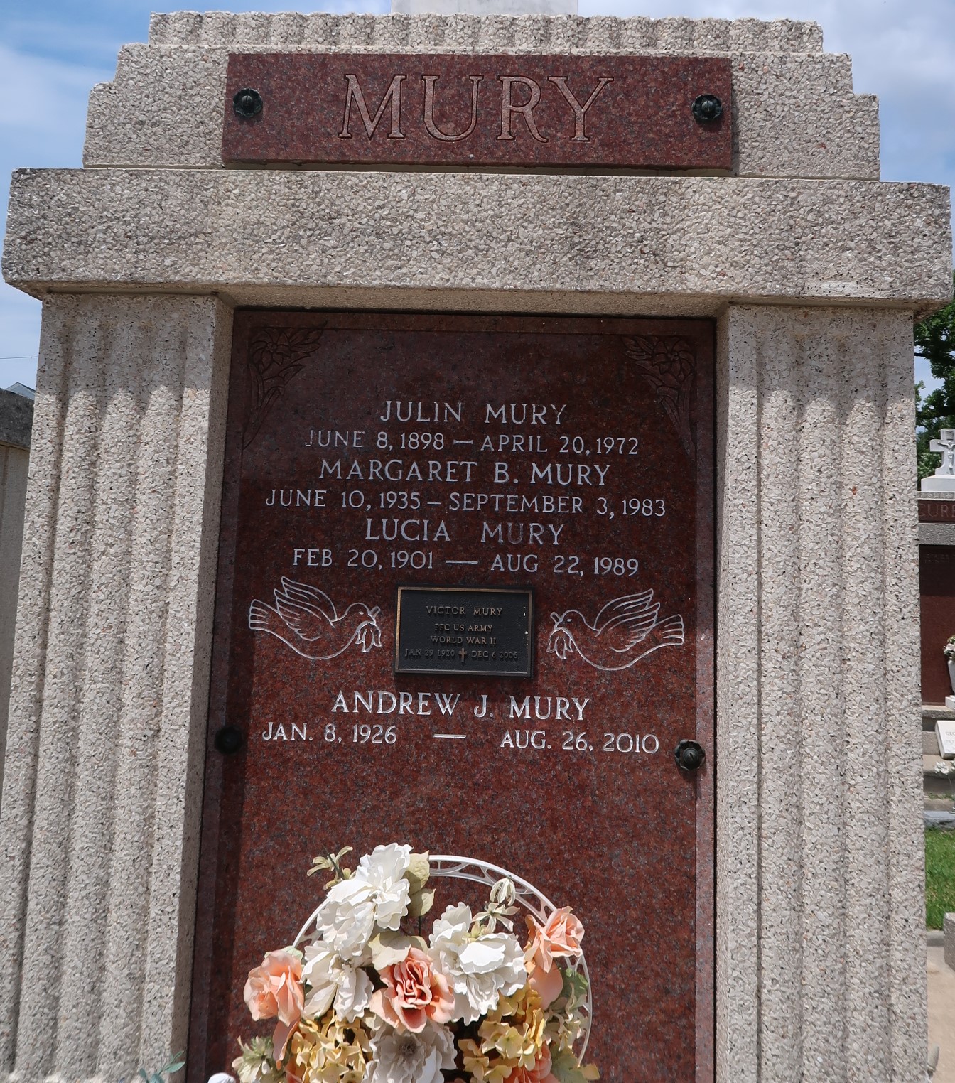 | Mury | Julin | 6/8/1898 | 4/20/1972 | Lucia M Mury | Victor & Marie Oubre Mury | Tm T-Lo | |