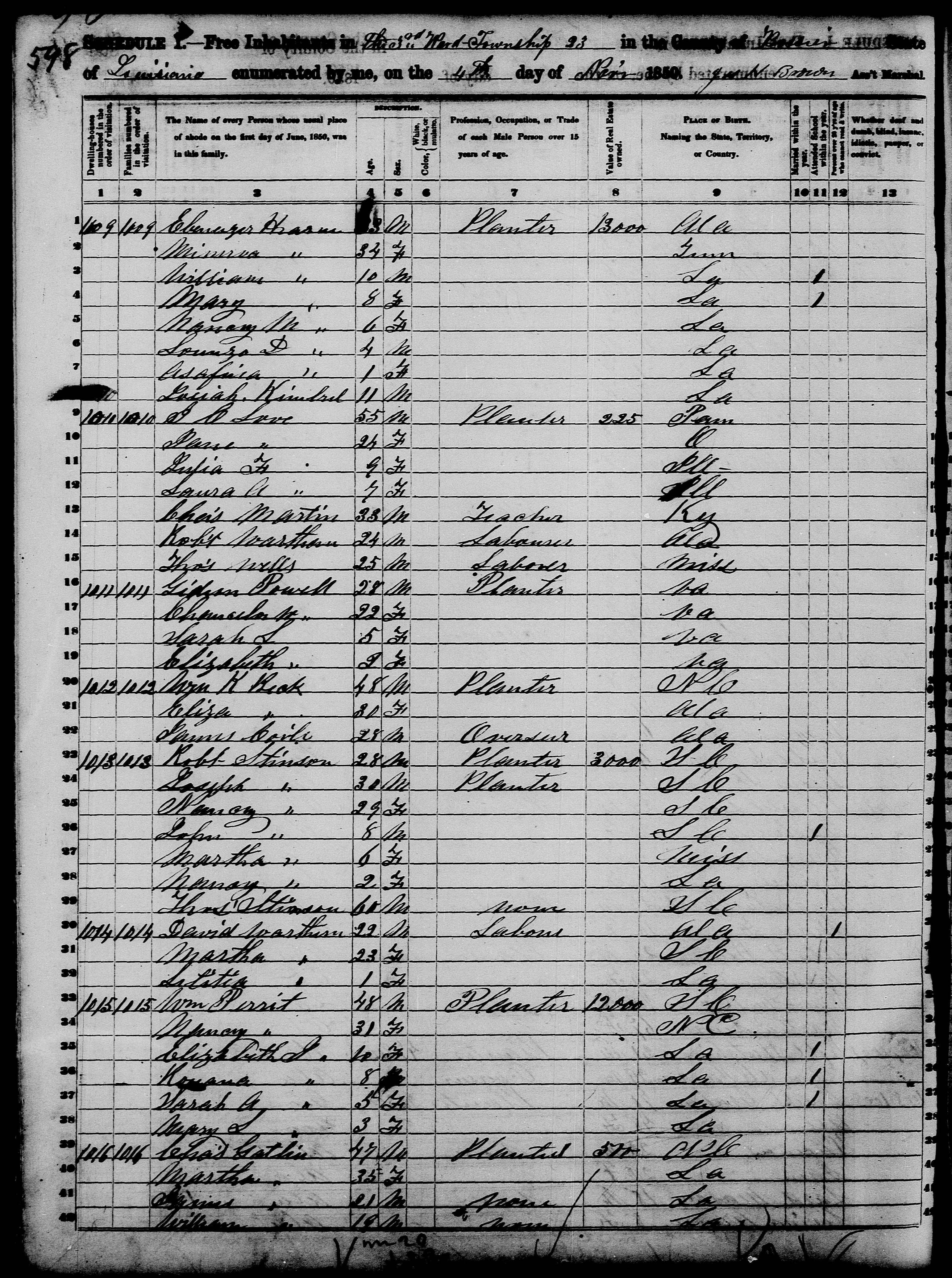 1850 Census, Bossier Parish, LA