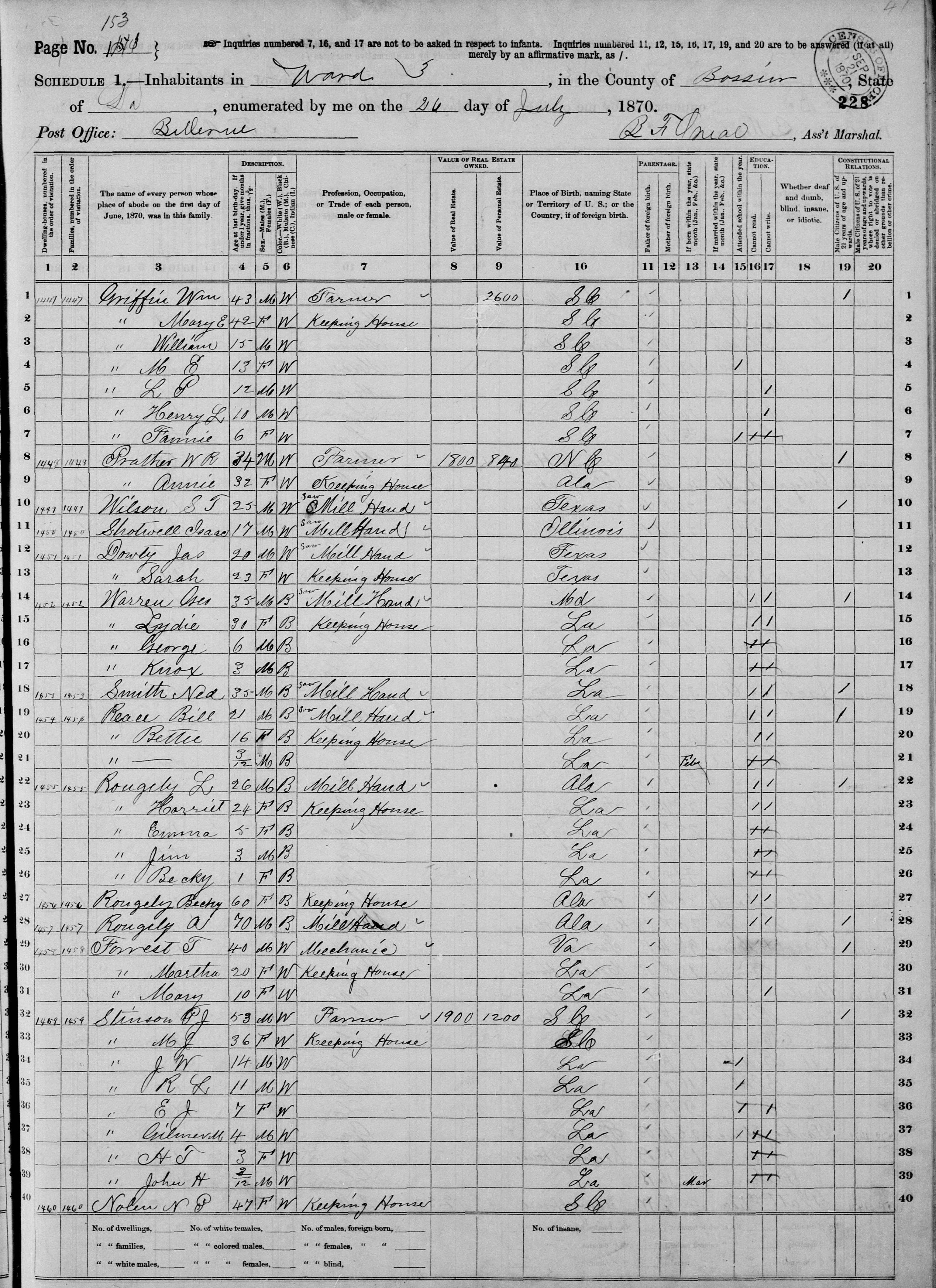 1870 Census, Bossier Parish