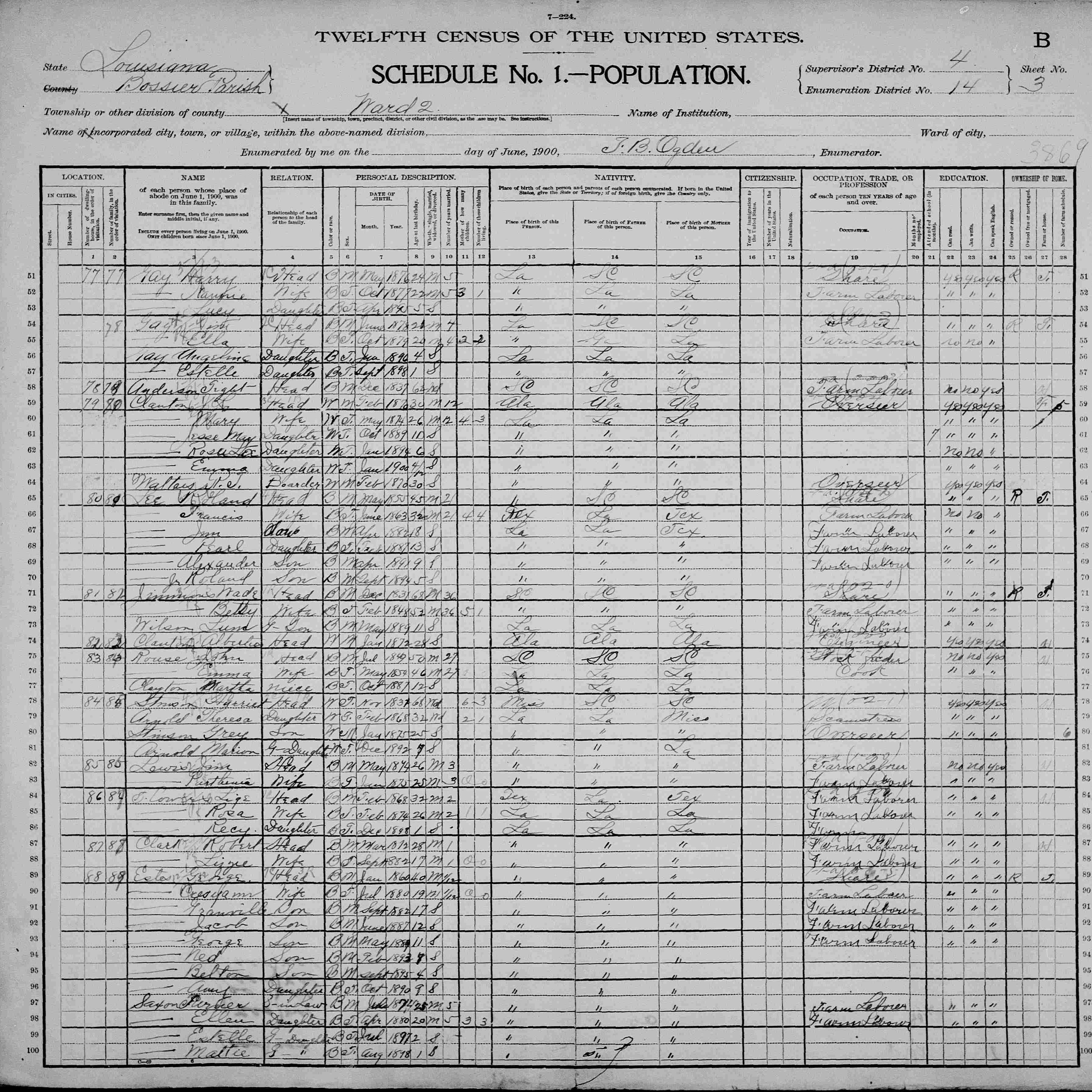 1900 Census, Bossier Parish