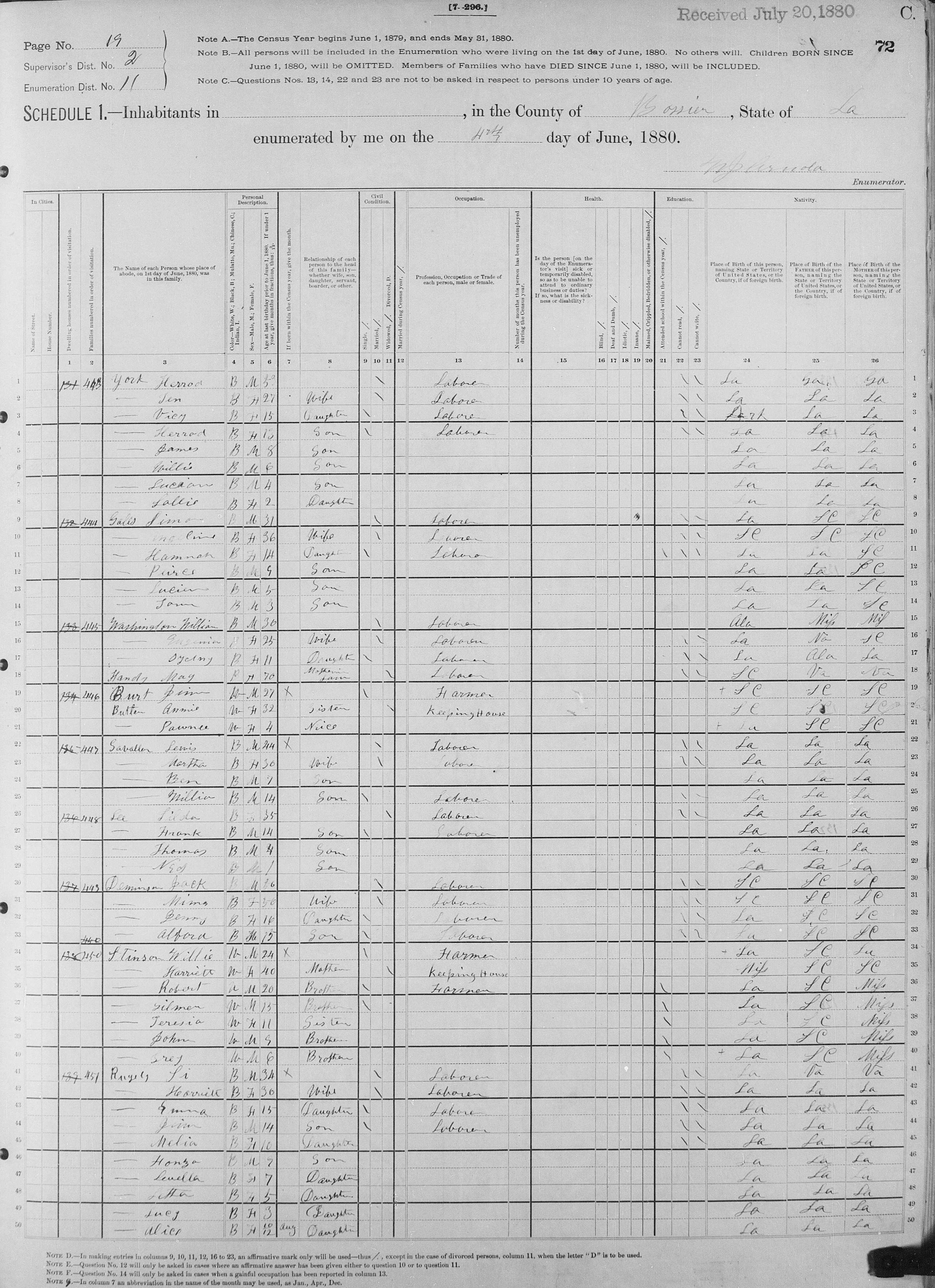 1880 Census, Bossier Parish