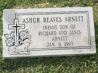 ARNETT, Ashur Reaves b & d Jan 9, 1993, infant son of Richard & Janis Arnett, buried at the foot of his grandmother's grave, Kelly Sampite POCHE, submitted by Richard "Rick" Arnett