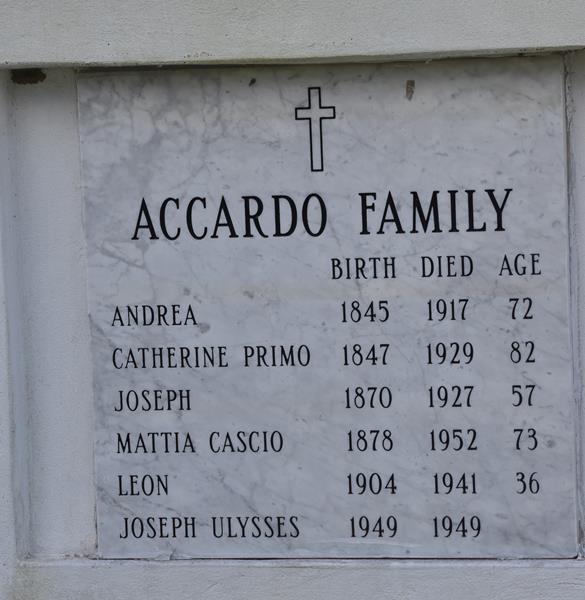 | Accardo | Joseph | 1870 | 1927 | Mattia Cashio | Accardo Family | photo | ||