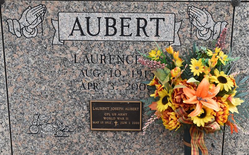 | Aubert | Laurent Joseph | 5/15/1912 | 6/1/2000 | Laurence Anne Schexnaydre | Victor & Alice Dufresne Aubert | WW II Cpl US Army | obit | photo |