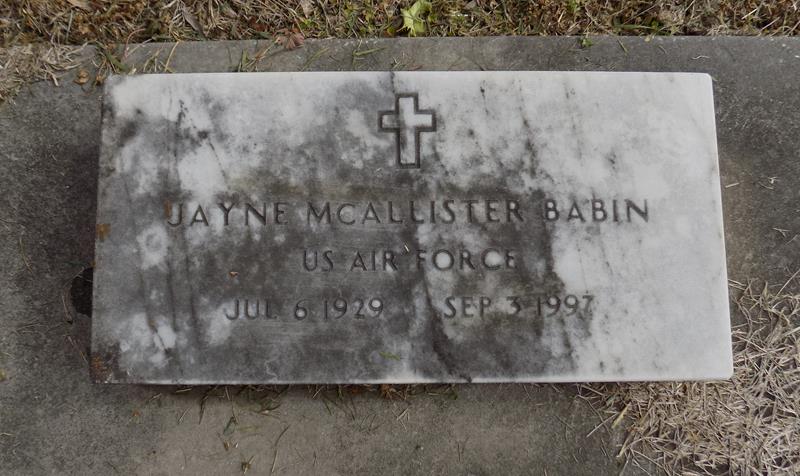 | Babin | Jayne (McAllister) | 7/6/1929 | 9/3/1997 | US Air Force | photo | |||