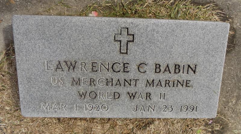 | Babin | Lawrence Charles | 3/1/1920 | 1/23/1991 | WW II US Merchant Marine | photo | |||