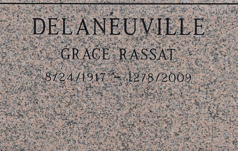 | Delaneuville | Grace (Rassat) | 8/24/1917 | 12/8/2009 | Felix J & Camilla Pertuit Rassat | obit | photo | ||